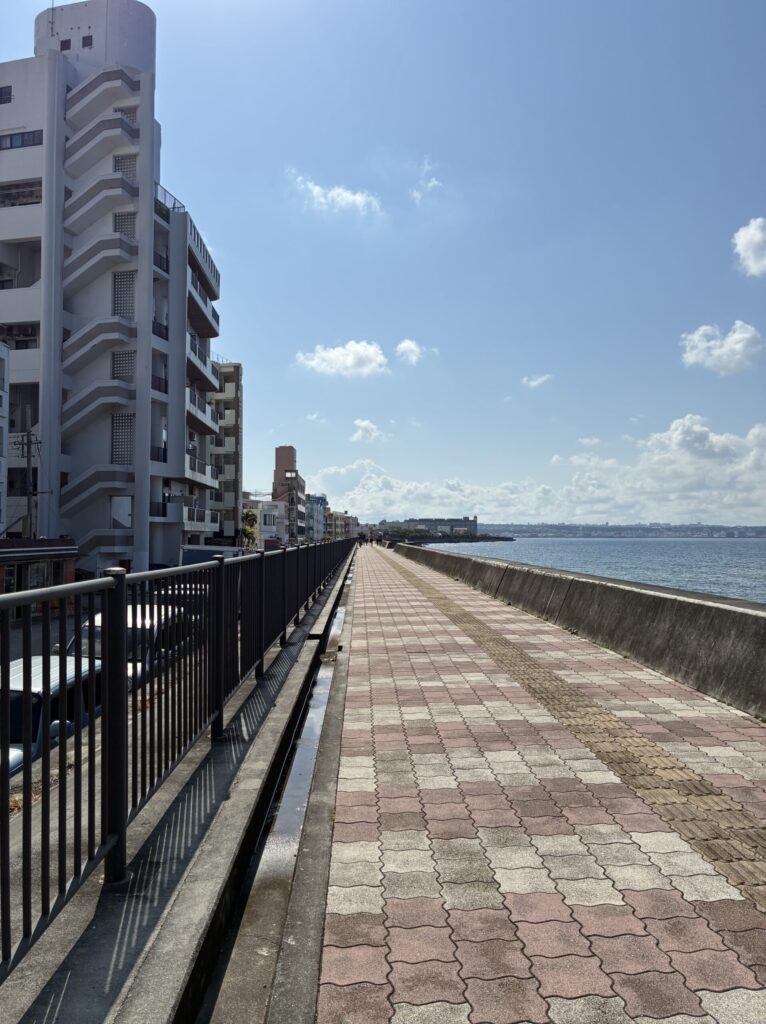 天気もよく、ワンちゃんのお散歩やジョギングを楽しむ人たち、海をゆったり眺める人たちで賑わい、穏やかな時間が流れていました。