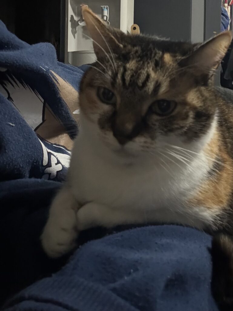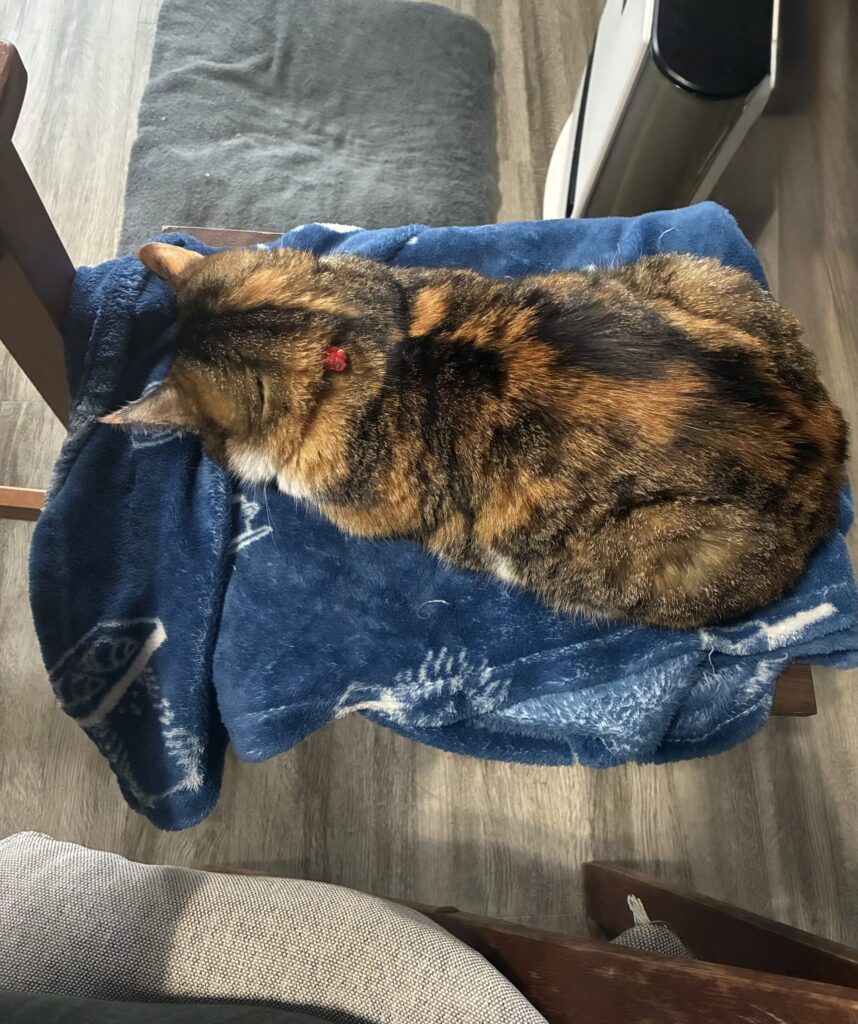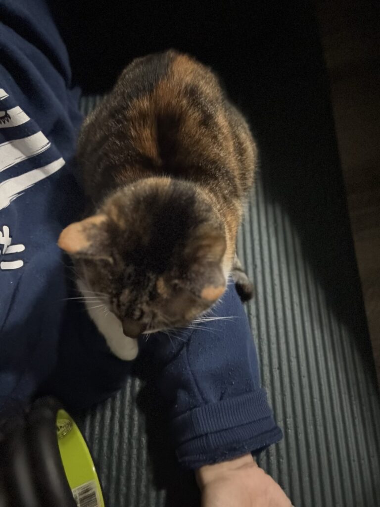起きてすぐのストレッチ中は腕に座りだしました。